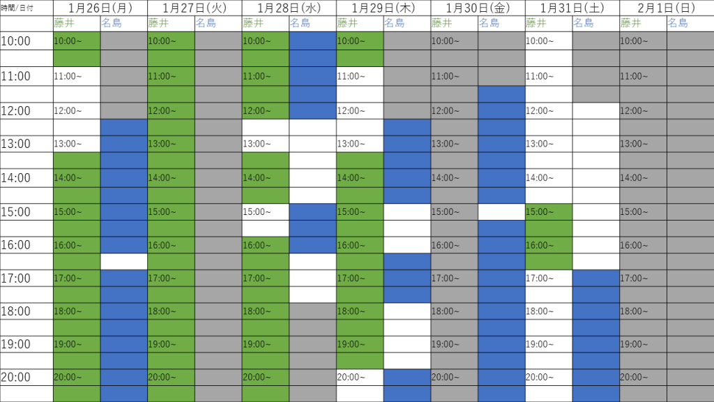営業時間→10:00~21:00 ※20:00スタートが最終受付となります